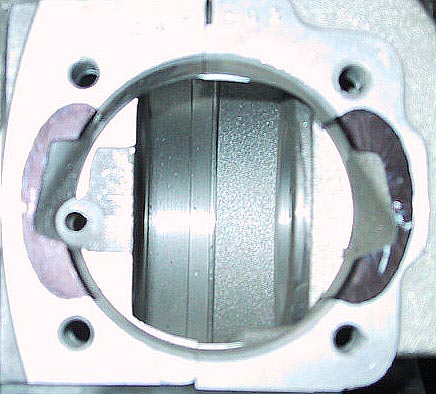 Um euch nun mal mit netten Bildern zu versorgen, könnt ihr euch unten meinen H2O-Zirri anschauen. Die Kanäle sind von mir bearbeitet worden, nachdem ich mich über die Verarbeitung geärgert hatte. Die original Zirri Kanäle sind schon recht groß, aber man kann ja immer noch was dran machen. >;-) Die Werte die ich beim Zirri hatte waren um einiges größer, als die eines normalen PK Motors. Auslasszeit war 195°Grad und Überströmzeit ergab ca. 130° Grad.