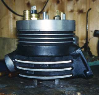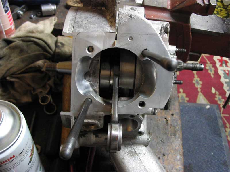 Hier nun ein Blick auf die Kurbelwelle, die an der Wange+Drehschieberdichtfläche auf 205° gebracht wurde.